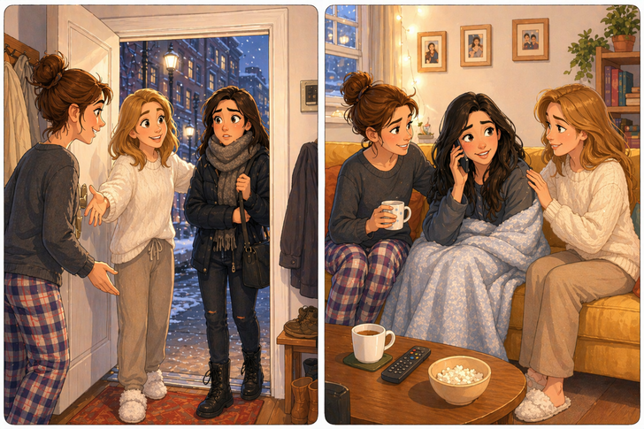 - Моя соседка по комнате как-то привела к нам совершенно незнакомую девушку. Та оказалась в чужом районе поздно ночью. Идти одной через весь город было плохой идеей, поэтому соседка привела ее к нам, дала ей телефон и предложила переждать у нас в гостиной до утра.
