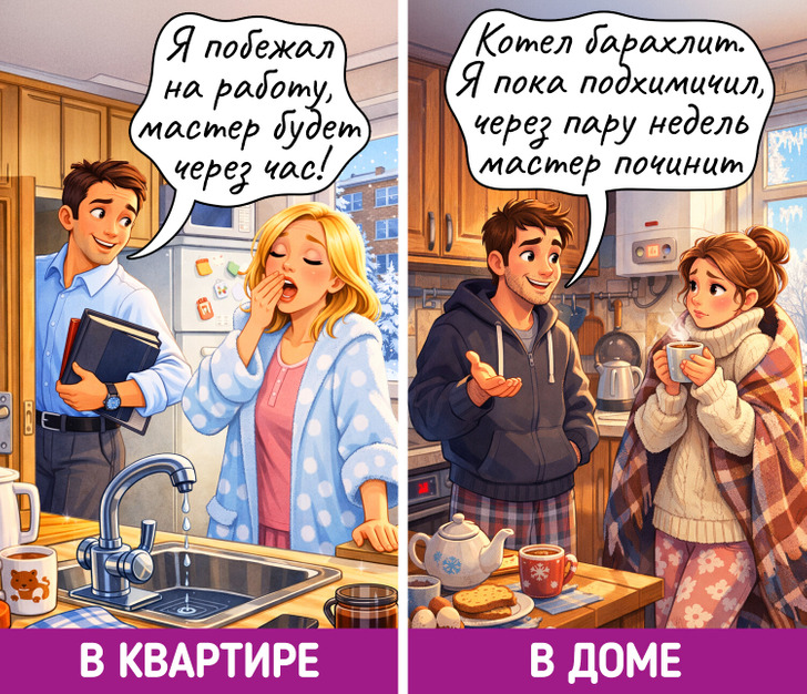 Переехавшие из квартиры в частный дом делятся на два типа: те, кто светятся от счастья, и те, кто выглядят так, будто только что вернулись из кругосветки на плоту. Самое интересное, что иногда это одни и те же люди. Дело в том, что «свой угол» в многоэтажке и «свой дом» на земле — это две разные планеты. Везде свои радости и трудности. Мы решили показать это на примере жизненных и забавных комиксов, в которых многие узнают себя.