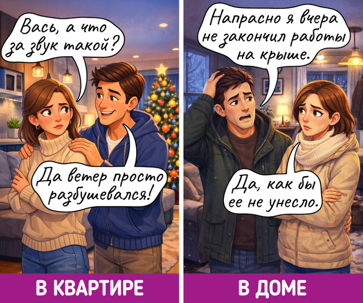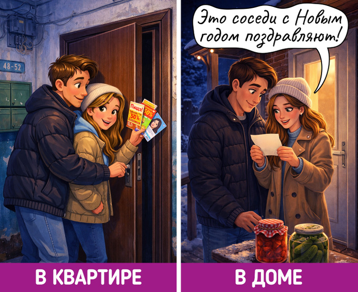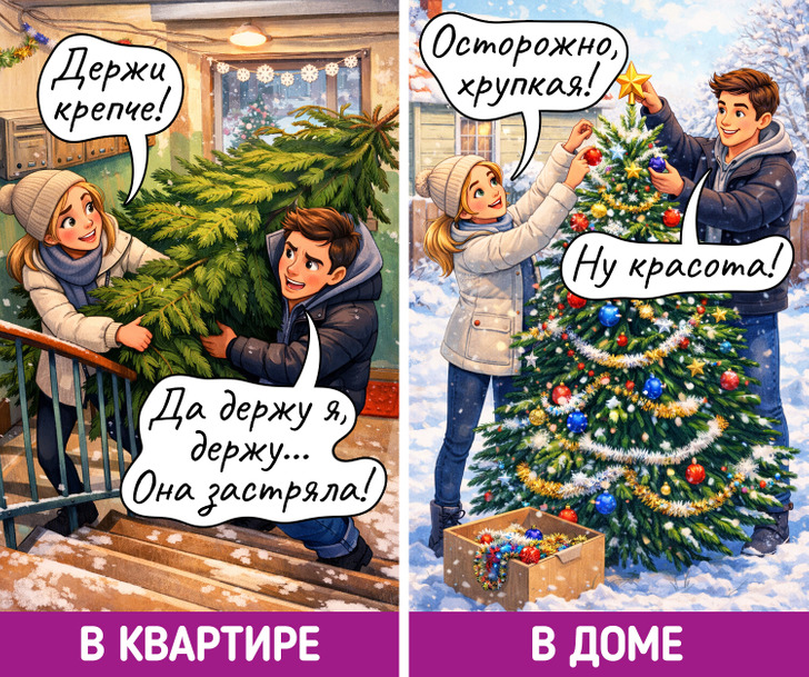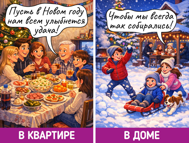 Празднование Нового года — это самая уютная семейная традиция. Посиделки в квартире и в доме проходят чуть по-разному