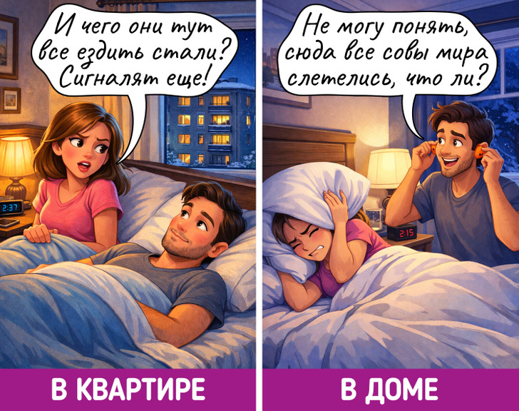 Что в квартире, что в доме звукосопровождение от соседей неминуемо. Меняется лишь его характер
