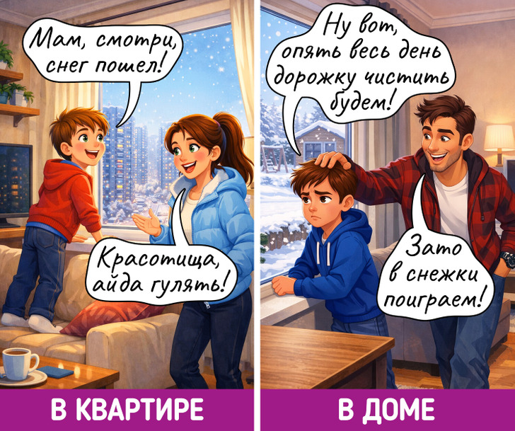 Снег — зимнее волшебство! Но жители квартир и домов радуются ему по-разному