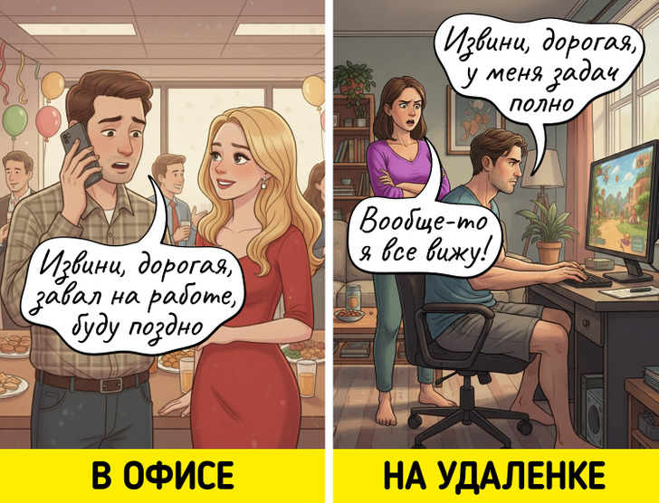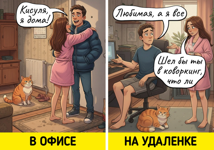 5. Отвертеться от домашних забот внезапно навалившейся «работой» на удаленке чуточку сложнее, чем в офисе
