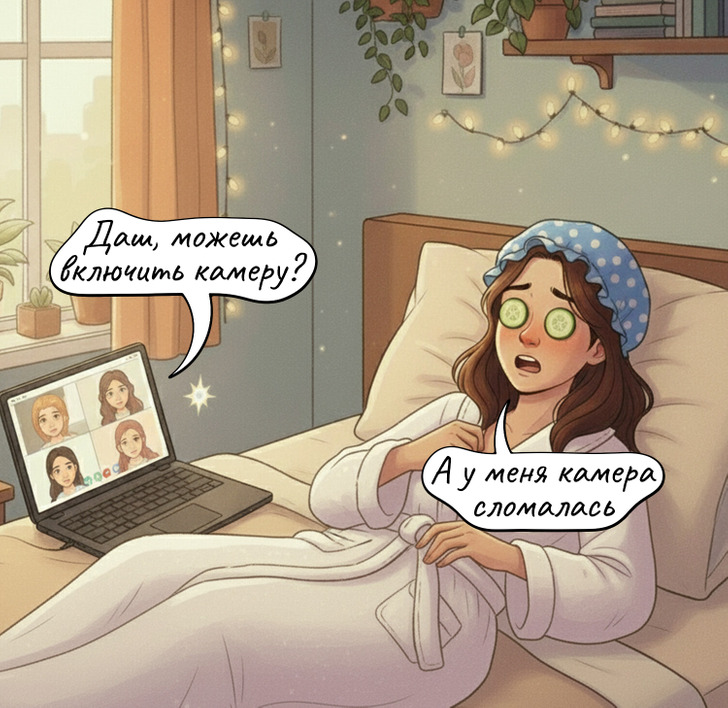 1. Бывает, за год ни разу камеру на созвоне не попросят включить, а как только решишь масочку сделать, так начинается...