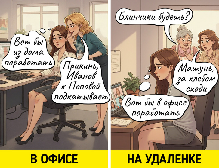 13. Дихотомия офиса и удаленки: в офисе хочется домой, а дома хочется в офис