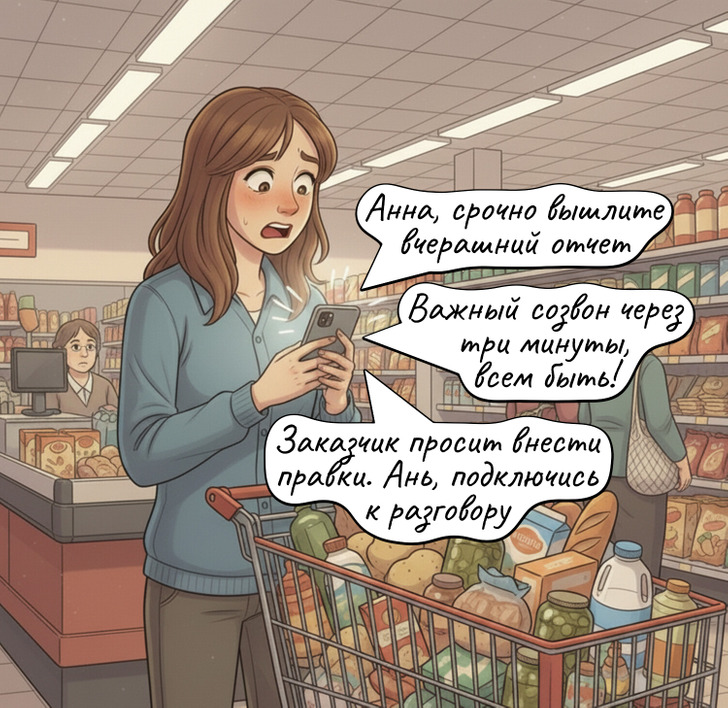 7. Закон Мерфи для удаленщика звучит так: если ты вышел в магазин на пять минут, ты всем срочно понадобишься