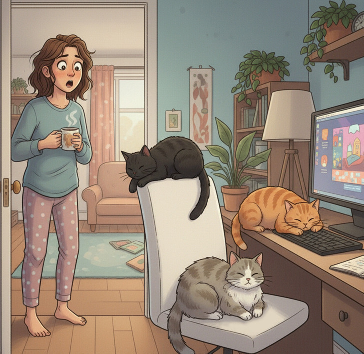 4. А стоит выйти из комнаты на минуточку, как рабочее место оказывается нагло захвачено шерстяными тунеядцами