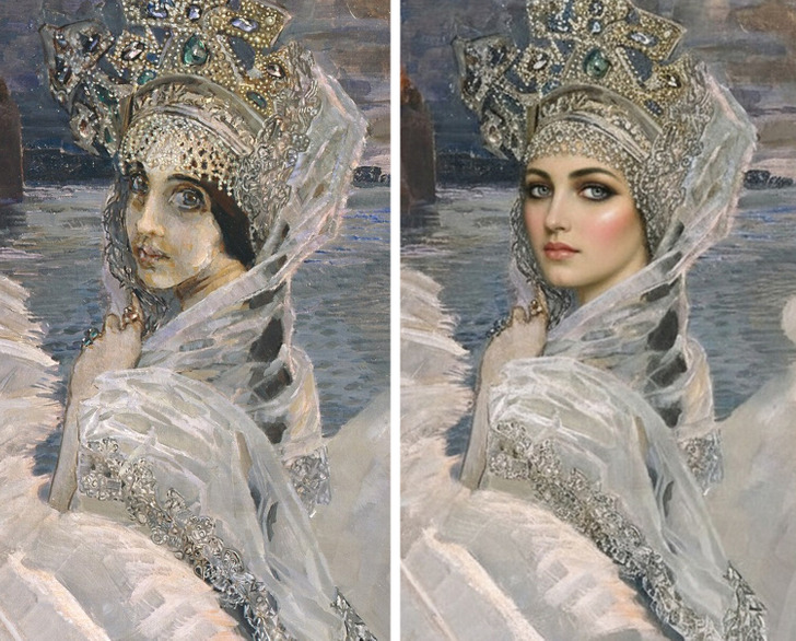 Переделанные "Царевна-Лебедь" и "Мона Лиза", вообще, убили.