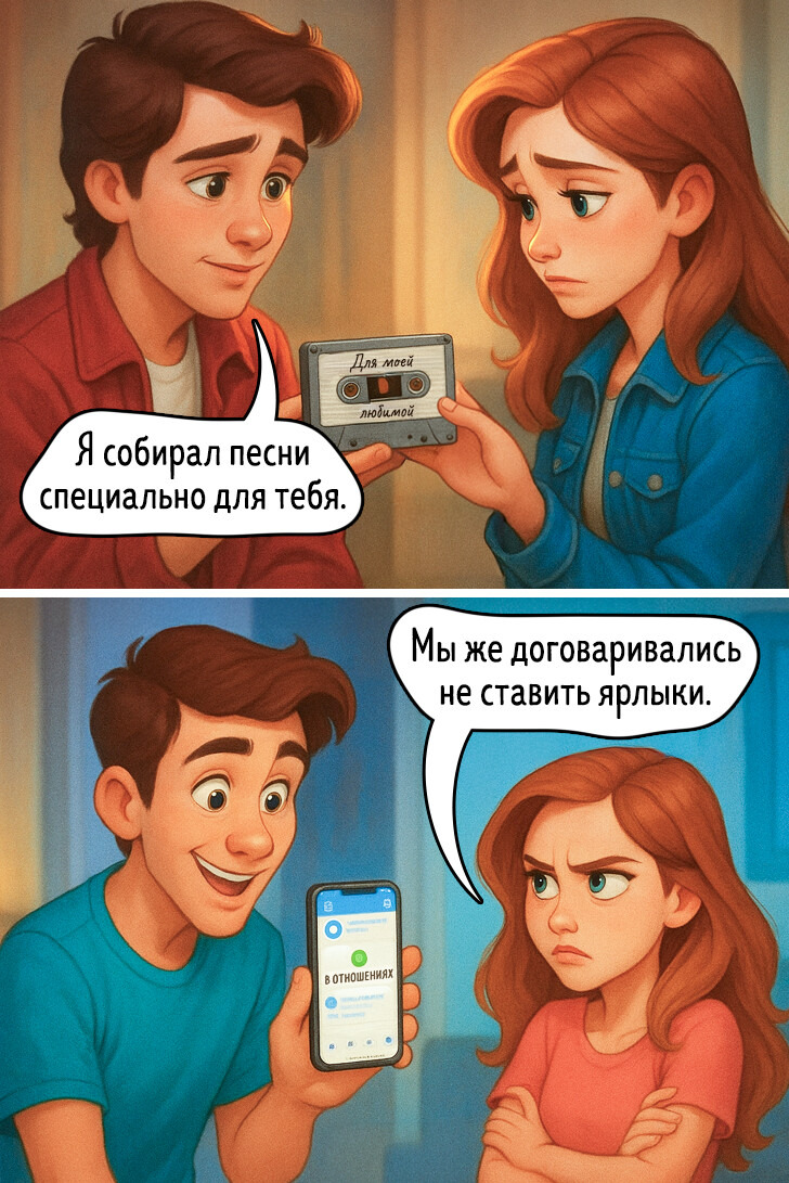 Раньше все было проще — чувства выражались через простые, но значимые жесты. Ты дарил что-то личное, и этого было достаточно. А сейчас все стало сложнее — статус, ярлыки, и необходимость подтверждений.