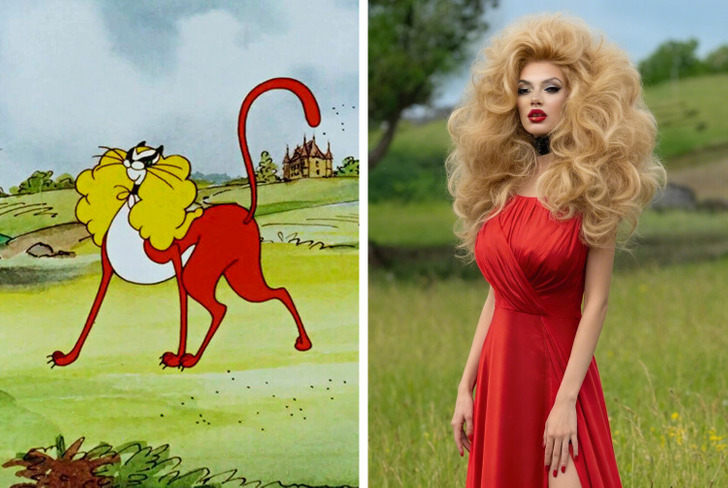 Миледи из мультфильма «Пес в сапогах». Светская львица, та самая la femme fatale, известная своей любовью к красному цвету. Все бабули у подъезда обсуждают ее наряды