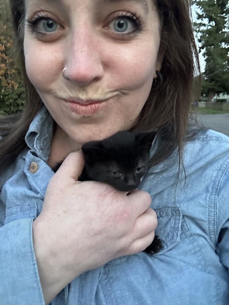 «Я пыталась найти черную кошку с поврежденным хвостом, которую я видела за день до этого, но ее не было. Но вы только посмотрите, кто вместо нее нашел меня»