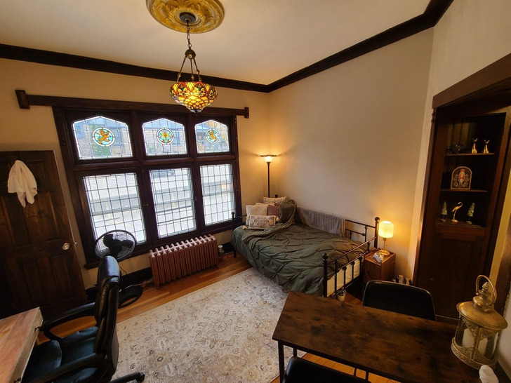 Не люблю кровати у стены. Надо было её торцом по центру к правой стене, параллельно окну. И не такую узкую, а нормальную.