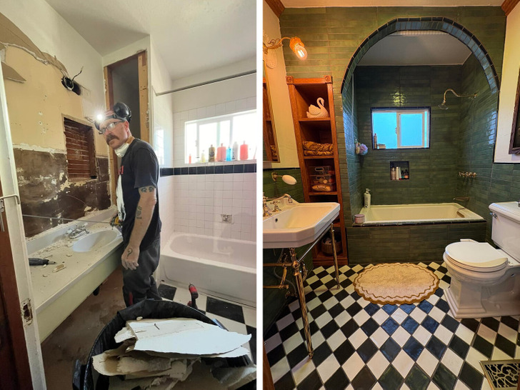 «На ванную мы потратили почти 1,5 года! Все сделано своими руками. Наш дом был построен в 1918 году, и мы вдохновлялись этим периодом»