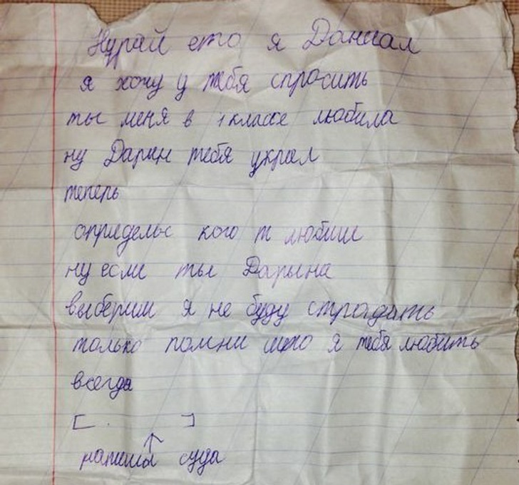 - Было мне 13 лет, и я решила написать записку мальчику, который мне нравился. Два вечера выбирала слова, переписывала, в итоге сложила и передала через подругу. А подруга перепутала и отдала записку другому мальчику, его другу! Тот прочитал, пришел ко мне сам и говорит: «Это мне?» Я говорю, мол, нет, это не тебе. А он говорит — жаль. Покраснел и ушел. Тот, кому я писала, так ничего и не узнал. А этот через год пригласил меня в кино. В этом году у нас родился второй ребенок. Подруге я до сих пор благодарна.