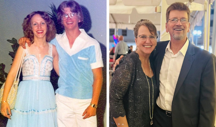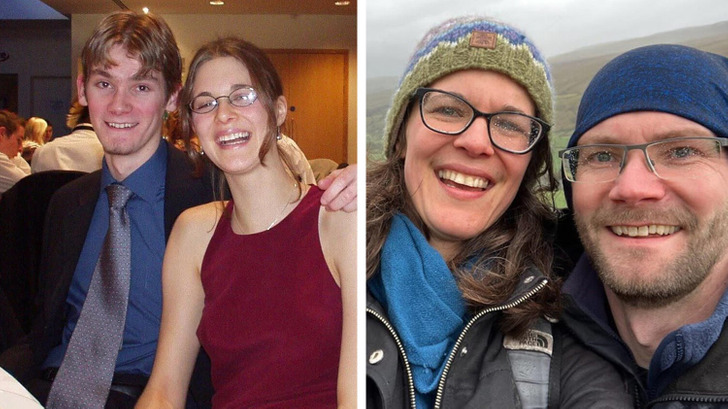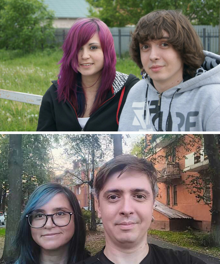 «Слева — мы на выпускном в 2003 году, а справа — отмечаем нашу 15-ю годовщину свадьбы»