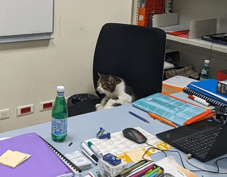 «У вас в школе есть коты? У нас сегодня один устроил полный хаос на уроке — мяукал, требуя еды»