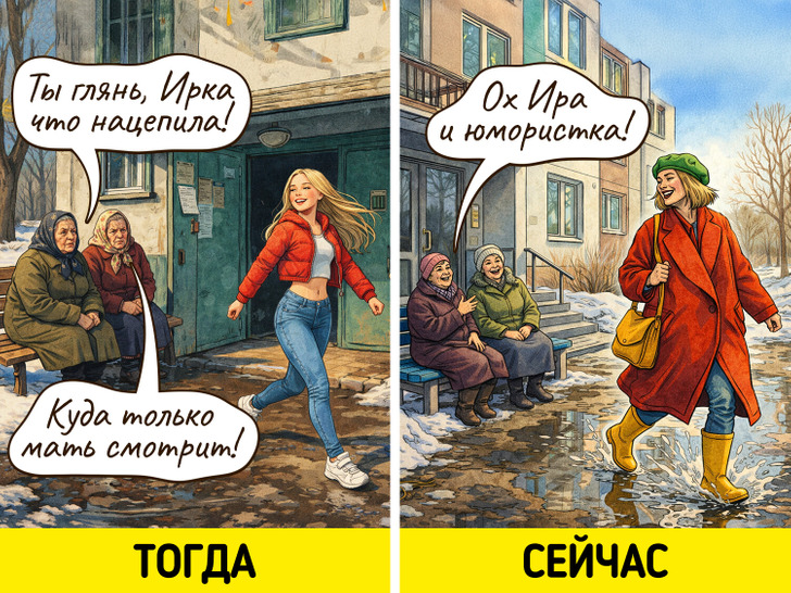 Помните, как в юности нам хотелось выделиться, быть самой модной, яркой, заметной? Мы просили маму купить «те самые джинсы», носили капроновые колготки и высокие каблуки зимой, активно выщипывали брови, чтобы приблизиться к заветному образу. Но с возрастом это проходит, вырабатывается свой собственный стиль, да и жертвовать своим комфортом ради моды уже не хочется. И мы решили нарисовать об этом комиксы.