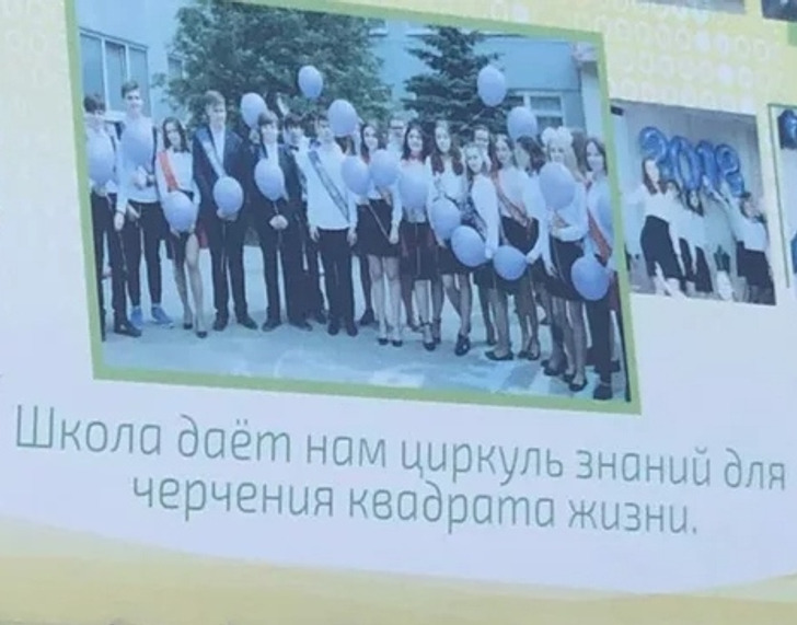 На стене одной из школ города. А вы можете циркулем начертить квадрат?