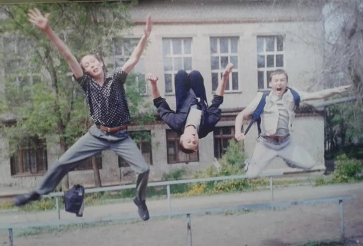 «Школьные друзья. С трех попыток мы поймали кадр на мыльницу. Я — крайний справа»