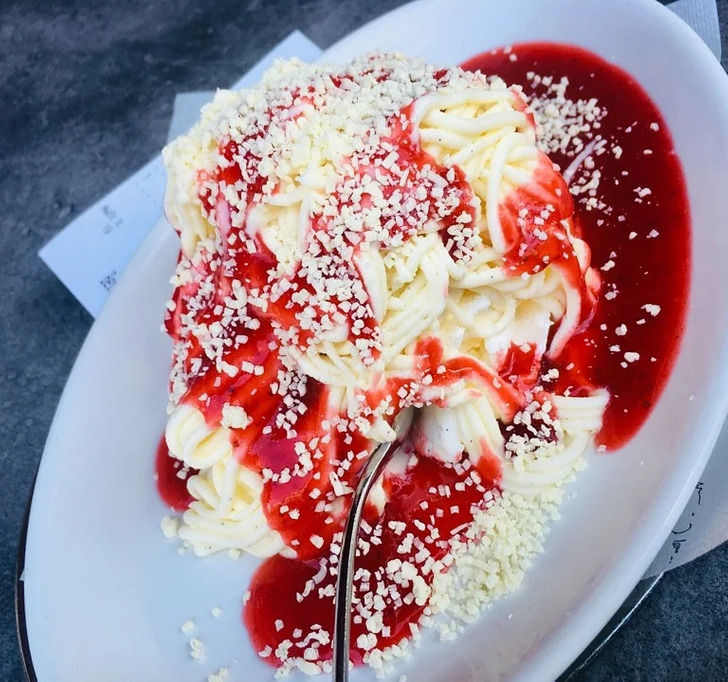 В некоторых кафе в Германии подают мороженое в виде спагетти