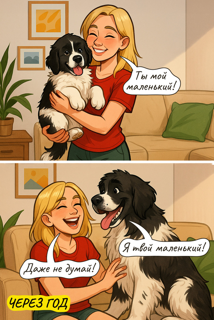 Здоровенный пес вполне может переживать из-за того, что хозяйка «уменьшилась» и теперь он не влезает ей на ручки