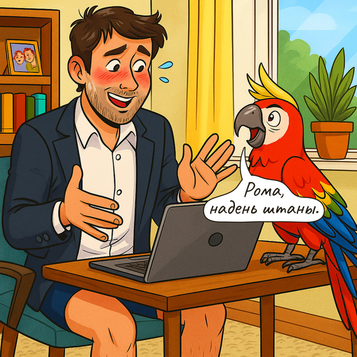 А вот попугай даже сейчас легко способен вогнать нас в краску
