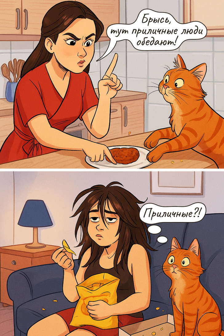 Так смотрит, будто что-то хочет сказать. Пожалуй, практически любой хозяин хоть однажды видел это выражение на мордочке своего пушистика. А и правда, о чем бы могли поговорить с нами домашние животные? Однажды мы крепко задумались над этим, а потом нарисовали целую подборку шуточных комиксов об упрямых котах, возмущенных рыбках и собаках с тонкой душевной организацией.