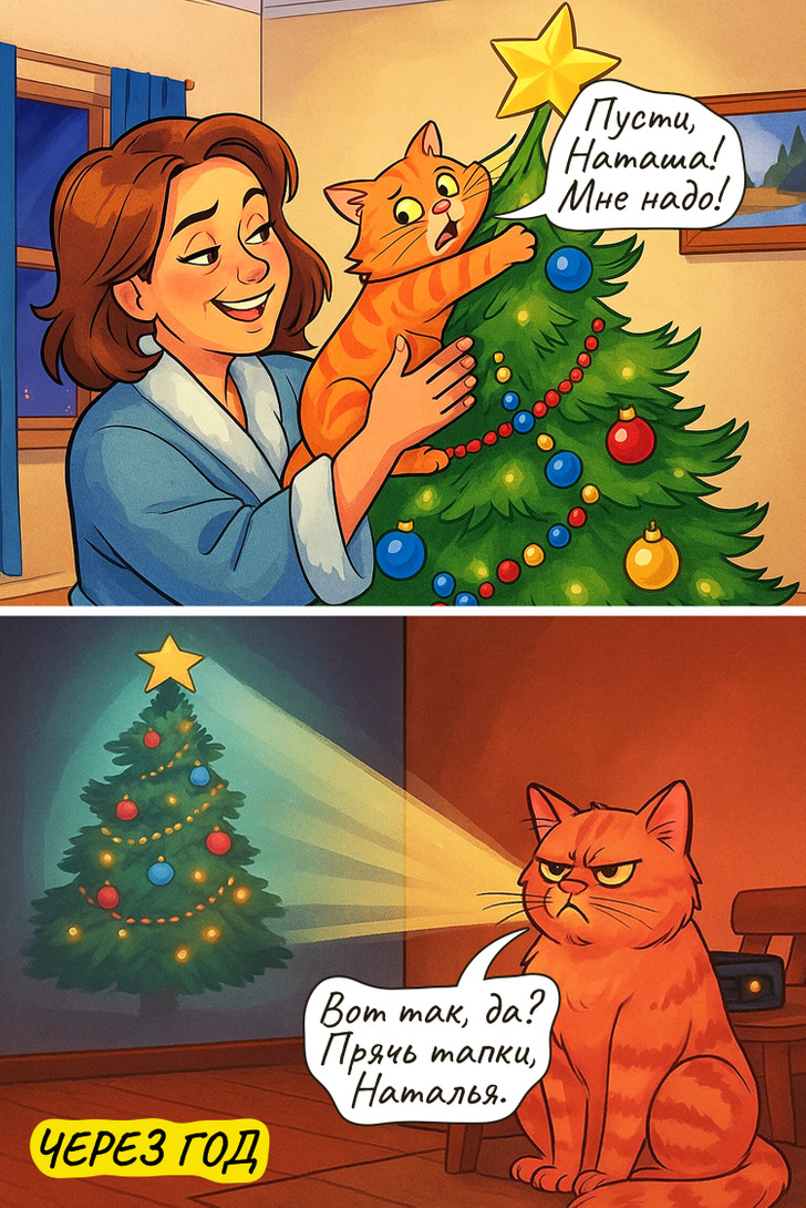 Мой кот обращал внимание только на дождик и мишуру. Шарики, игрушки и сама елка его не интересовали. Мы это быстро поняли, дождь с мишурой исключили и жили спокойно.