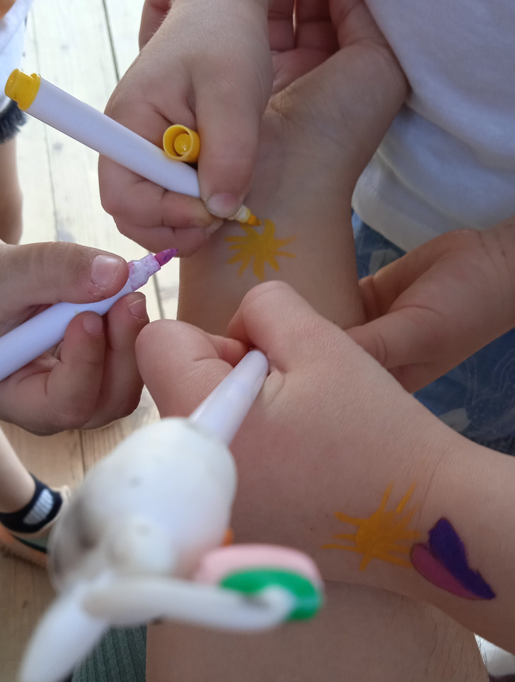 «Работаю в детском саду. Сегодня мои ребята решили открыть тату-салон и я, естественно, его посетила. В три руки стараются, молодцы!»
