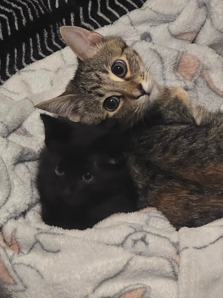 «Я собиралась отдать черную малышку в другую семью, но моя пятимесячная кошка теперь считает ее своим детенышем, а я не могу разлучить их»