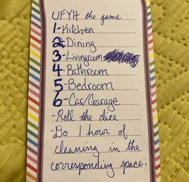 «Мне всегда сложно выбрать, с чего начать уборку. Я решила бросать кубик, расписав, какая цифра какой комнате соответствует»