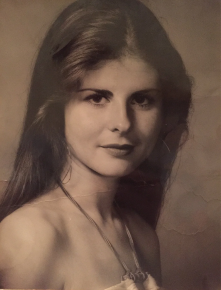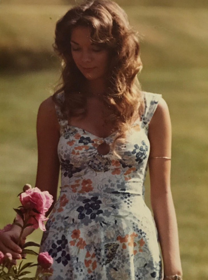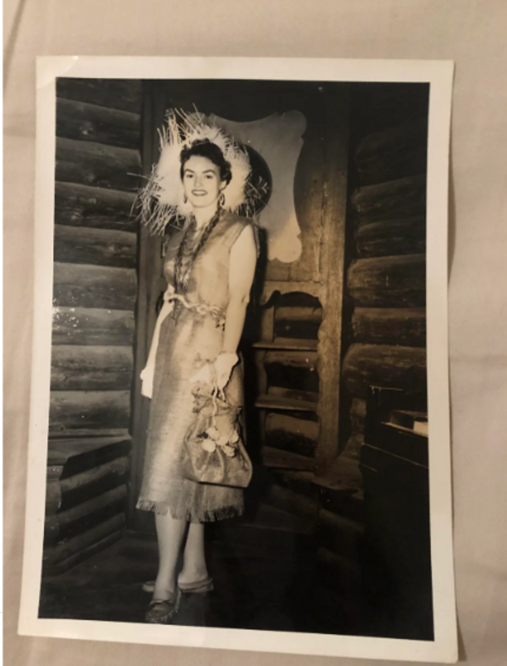 «Моя мама в вечер знакомства с папой. На ней платье из мешковины, которое она сама сшила, и ожерелье из скрепок»
