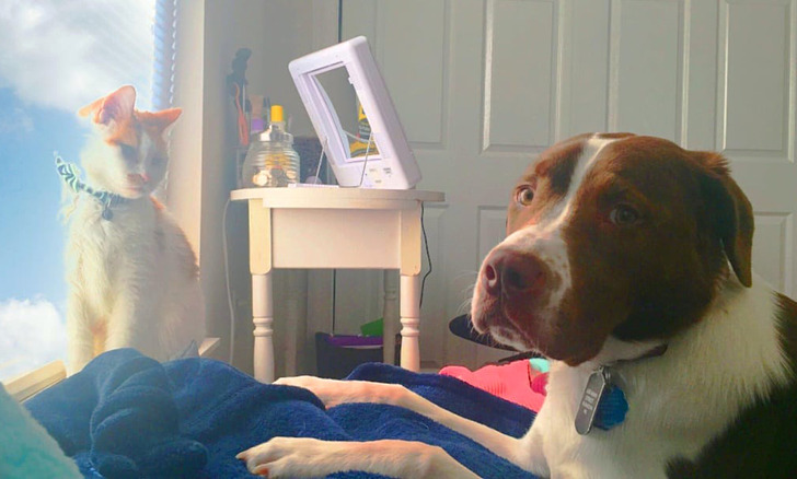 «Сделал фото, оно глюкануло, и теперь кажется, что кошка смотрит на собаку с небес»