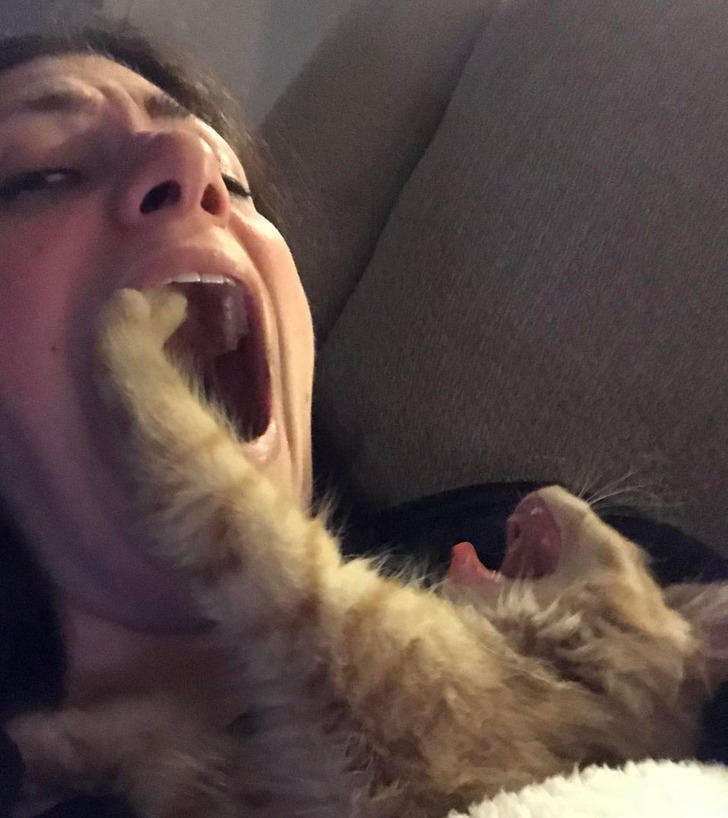 «Хотела сделать смешное фото, где мы оба зеваем, но мой кот решил поэкспериментировать»