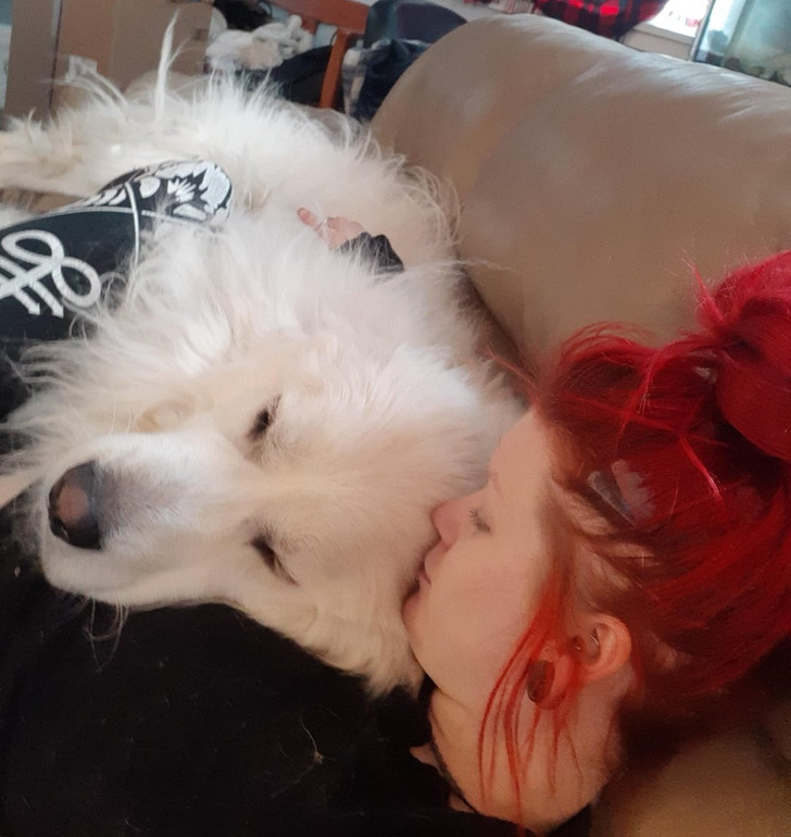 «Моя „маленькая“ 90-килограммовая собачка и по совместительству — меховое одеяло»