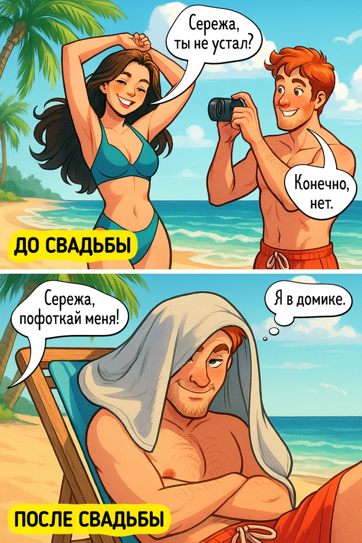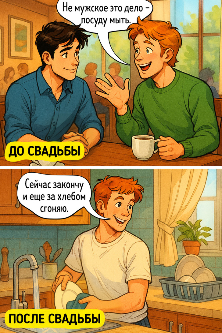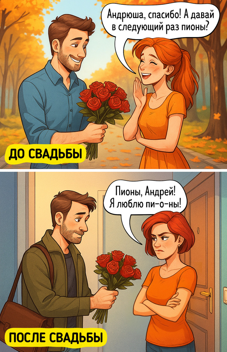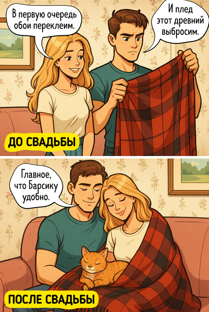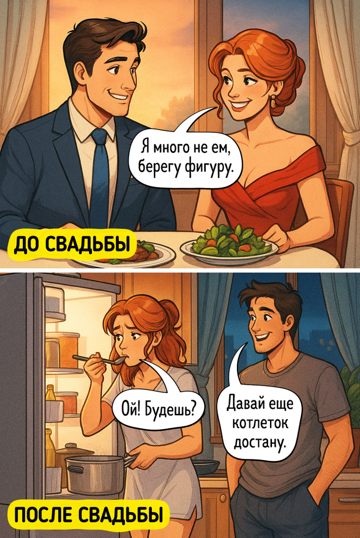 А вам есть что рассказать о том, как менялись ваши отношения после свадьбы? Не было ощущения, что вы заключали брак совсем с другим человеком? Вы всегда можете излить душу в комментариях к этой статье.
