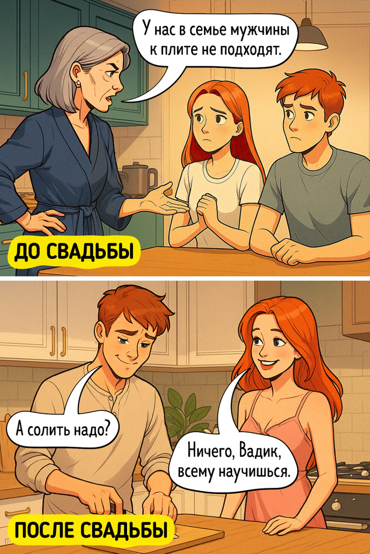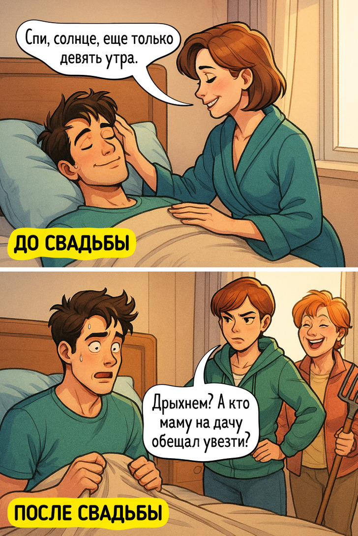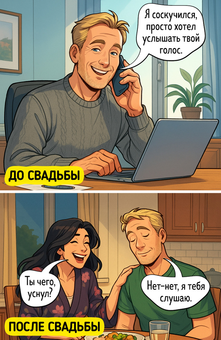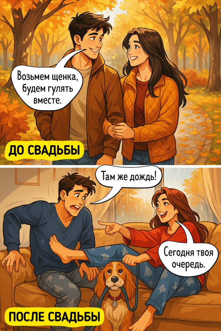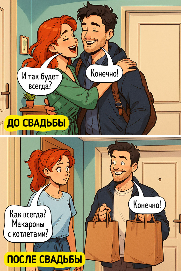 А вам есть что рассказать о том, как менялись ваши отношения после свадьбы? Не было ощущения, что вы заключали брак совсем с другим человеком? Вы всегда можете излить душу в комментариях к этой статье.