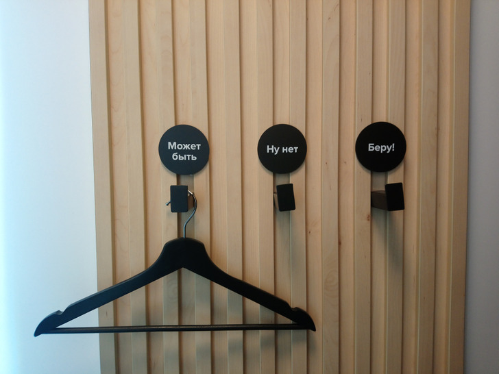 «В примерочной. Хорошо придумали. А для своих вещей крючок с другой стороны»