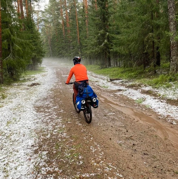 «Съездил в велопоход. Попали под сильнейший ливень и град. Зато потом, когда дождь закончился, весь лес превратился в волшебное место»