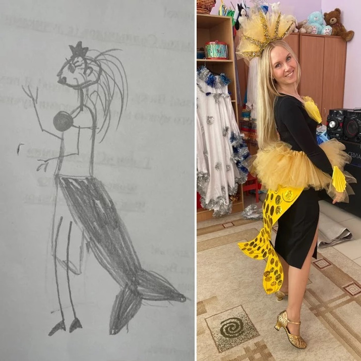 «Мой дебют на „большой сцене“ для любимого коллектива в честь праздника. Кстати, эскиз костюма я сделала сама»