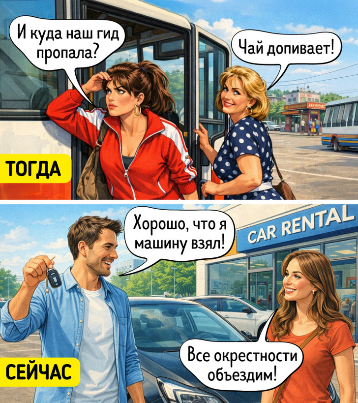 Автобусные туры искушали — за десять дней ты пять стран мог объехать (хотя пятая точка от сидения прилично уставала). Одна незадача: в группе обязательно находился потеряшка, который то пропадал в магазине, то застревал в туалете, а то просто где-то исчезал