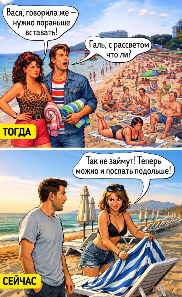 Бывает приходишь на пляж, а там — не то что прилечь, ногу поставить некуда. Толпы с прибрежной полосы никуда не исчезли, но за годы люди придумали разные хитрые способы, как застолбить для себя местечко