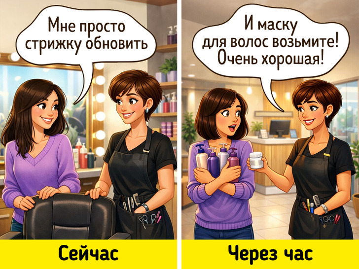 Иногда кажется, что мастер выбрал не то призвание и ему стоило бы стать продажником. Планируешь просто постричься, а выходишь из салона с целой охапкой косметики