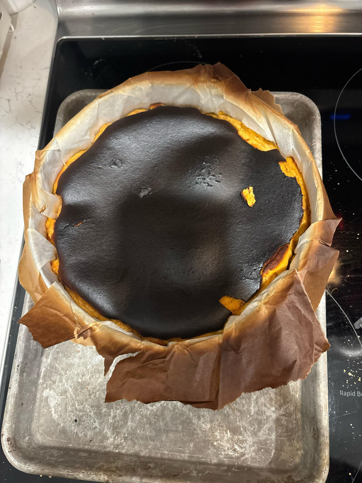 Баскский чизкейк вышел каким-то ну слишком подгоревшим