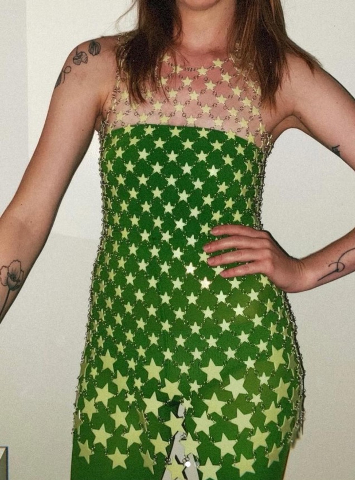 «Я увидела видео в TikTok и решила-таки попробовать сделать платье из звездочек до потолка. Они еще и светятся!»
