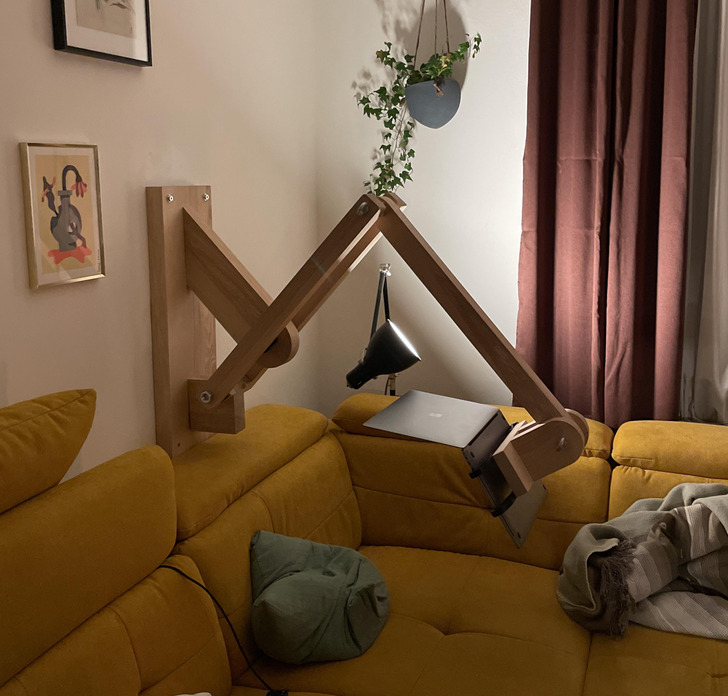 «Когда меня накрыли боли в пояснице, я смастерил этот „лежачий стол“, чтобы работать дома»