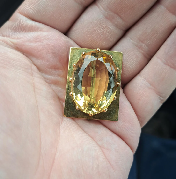 «Это невероятная находка всего за 50 долларов. Брошь викторианской эпохи из 15-каратного золота с цитрином примерно на 40 карат»
