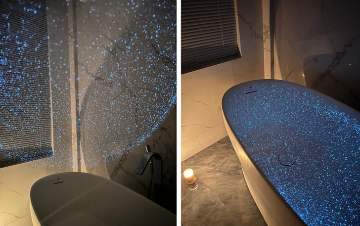 «Когда вы погружаетесь в теплую воду, и вдруг вся ванна превращается в звездное небо — это просто божественное ощущение. Кажется, что вы плывете в космосе, где нет ничего кроме тишины, воды и света.»