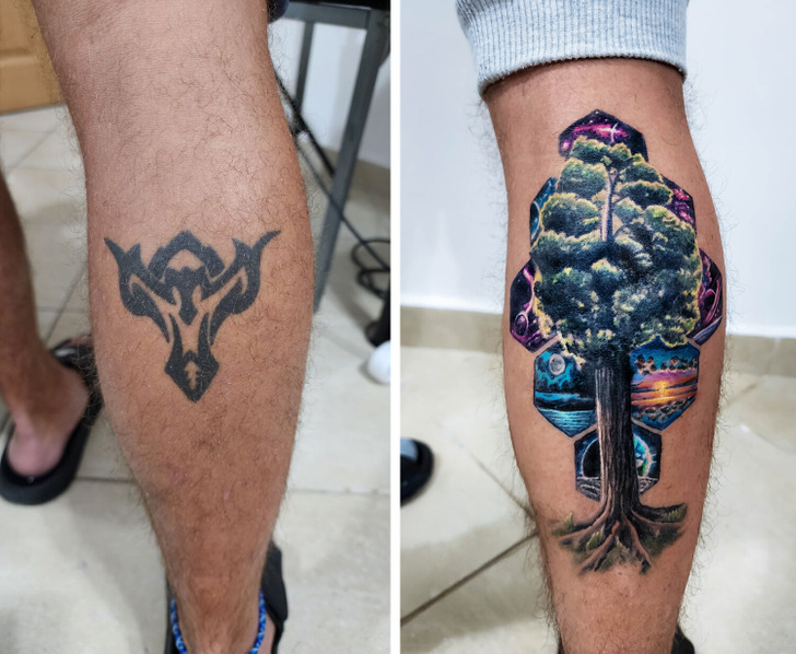 Неудачная татуировка — это обычно спонтанное решение, которое в какой-то момент казалось гениальным. Но, к счастью, ошибки на коже не всегда приговор. В этой подборке — примеры того, как люди нашли выход и превратили провальные татуировки во что-то действительно крутое.
