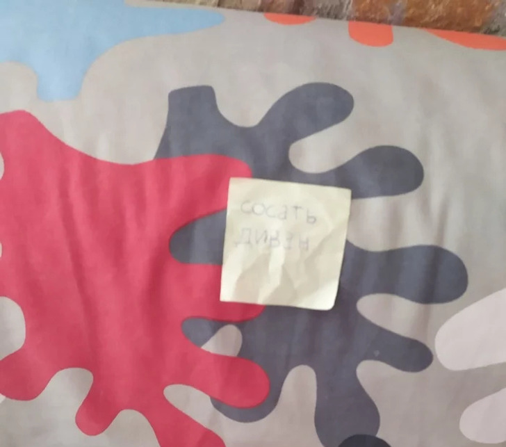 - Живу в Испании, работаю домработницей. Так уж получилось, что язык я все еще плохо знаю. На прошлой неделе ездили с мамой знакомиться с новыми людьми, у которых я буду убирать. Ну как знакомиться — скорее показывать, что где находится, как убирать, если нужно — ключи передать и прочее. Мама меня заранее предупредила, что с испанским у меня отношения натянутые, но я всегда с телефоном, в котором есть переводчик, так что с пониманием в целом проблем не будет. Поехала я туда убираться, хозяев дома не было. Начала работать и тут замечаю стикер на диване. Меня решили на всякий случай предупредить, что нужно пропылесосить диван. И при этом заботливо перевели. Только вот получилась у них фраза: «сосать диван». Честно говоря, даже представить не могу, как они умудрились получить такой перевод. © Cats.isMyLife / Pikabu