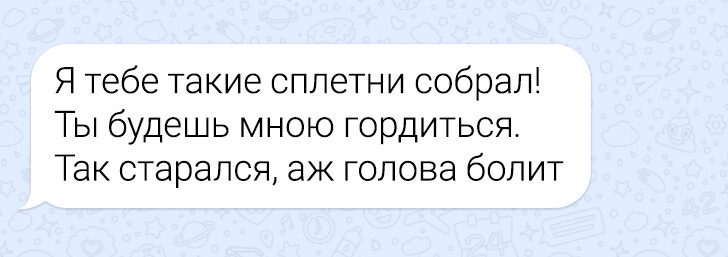 В любовных переписках, пожалуй, можно встретить все: и неловкие подкаты, и признания в измене и даже гордость за сбор сплетен. Иногда сюжет настолько непредсказуем, что хоть книгу пиши. Подобными переписками и поделились герои нашей подборки.